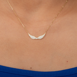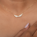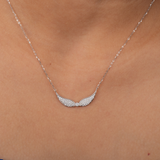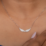 Embrace your inner angel with this delicate necklace featuring sparkling angel wings.