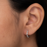 Add a touch of elegance to your everyday look with these delicate beaded huggie hoops. The minimalist design and sparkling stones make them a versatile accessory for any occasion.