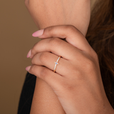 This ethereal ring is a celestial masterpiece, capturing the magic of the night sky. The centerpiece of this stunning ring is a captivating marquise-cut opal, displaying a mesmerizing play of color that shifts and changes with the light. This unique gemstone evokes a sense of wonder and mystery, making it a truly special piece.