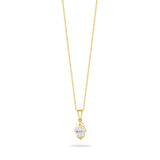 Crafted on a premium silver base and finished with radiant 18K gold plating, this necklace showcases a dazzling Cubic Zirconia stone that captures light beautifully. Whether you're styling for a special event or everyday glam, this piece makes the perfect statement—graceful, refined, and versatile.