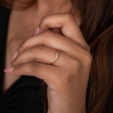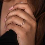 The Curved Grace ring is a sophisticated and elegant piece. Its unique curved band, adorned with a sparkling row of cubic zirconia stones, adds a touch of modern flair to any look.