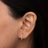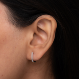 Elevate your everyday style with these stunning diamond-encrusted huggie hoops. The delicate, minimalist design is perfect for any occasion, while the sparkling diamonds add a touch of glamour. The comfortable and lightweight design ensures all-day wear, making them the perfect accessory for any outfit.