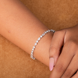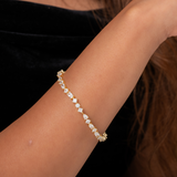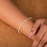 This dazzling bracelet shimmers with a row of sparkling heart-shaped stones, adding a touch of romance to any outfit.