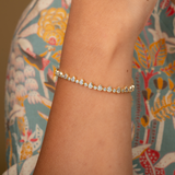 Shine bright with this bracelet, featuring a continuous row of dazzling stones that catch the light beautifully.