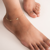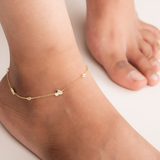 This dainty anklet with heart charms is perfect for adding a touch of love and sweetness to your look.