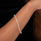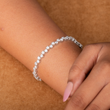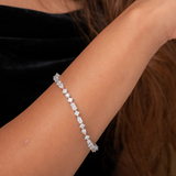 Prepare to turn heads with this show-stopping bracelet. Two rows of sparkling stones create a breathtaking display of brilliance and depth. Whether you're dressing up for a special occasion or simply want to add a touch of luxury to your everyday style, this bracelet is sure to make a lasting impression.