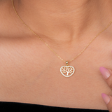 Embrace growth and connection with this delicate Tree of Life heart necklace. The intricate design and sparkling stones make it a meaningful and stylish accessory.