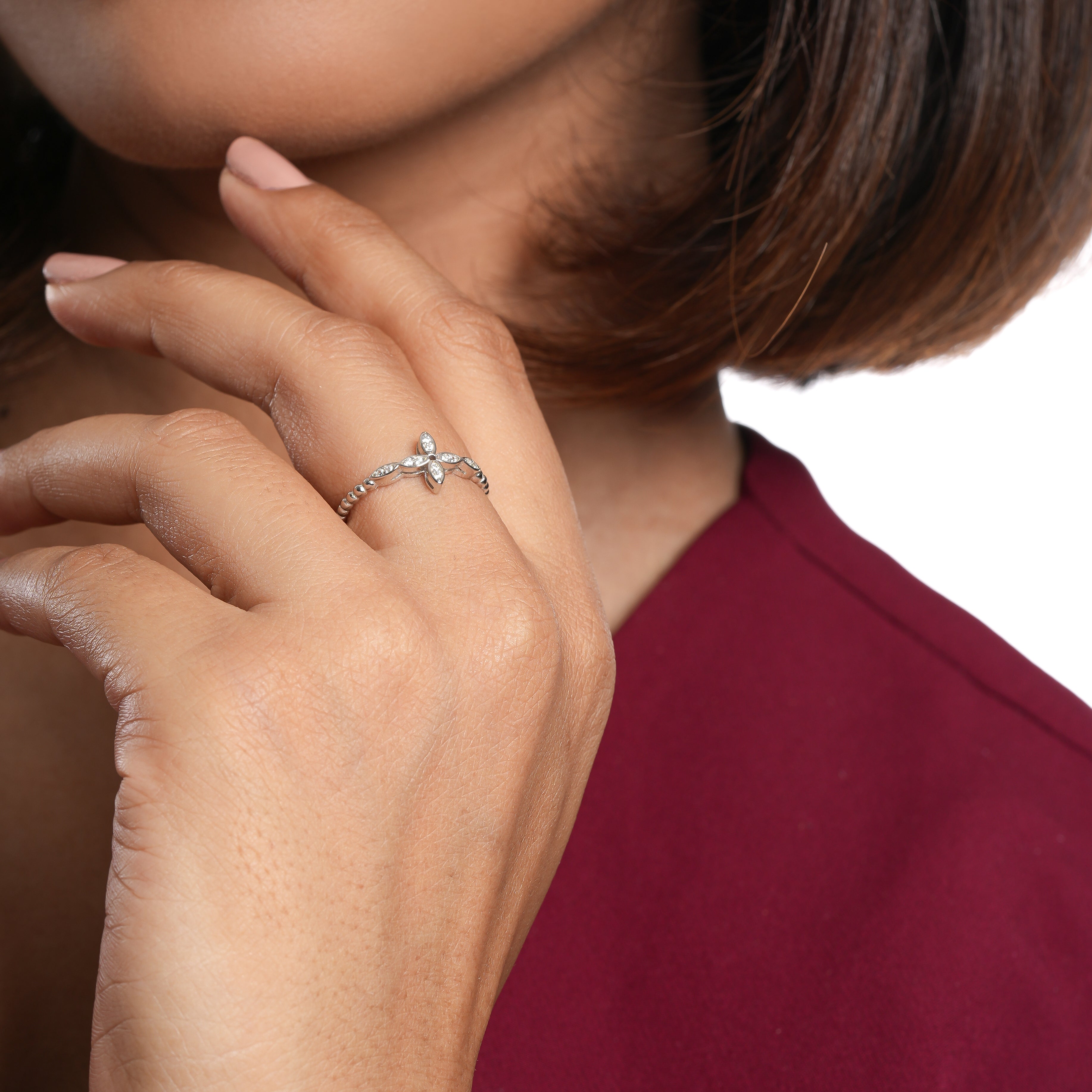 The Petal Kiss Ring is a delicate fusion of modern elegance and nature-inspired design. Featuring a blooming floral motif crafted with marquise-shaped petals, each embedded with dazzling cubic zirconia, this ring is a symbol of subtle luxury. The band’s beaded texture adds a contemporary twist, while the open adjustable design ensures a perfect fit. Available in both radiant 18KT gold plating and sleek 925 sterling silver, it’s a versatile favorite for any jewelry lover.