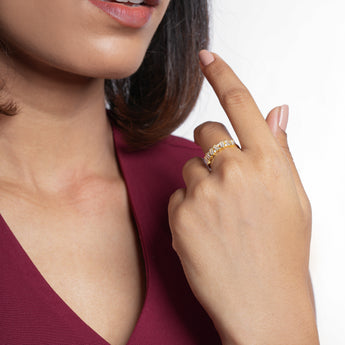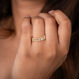 This dazzling ring features a captivating row of baguette-cut diamonds, radiating elegance and timeless beauty.