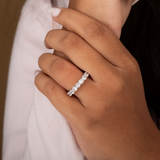 This dazzling eternity ring showcases a captivating row of oval-cut diamonds, radiating elegance and timeless beauty.
