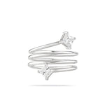 Elevate your everyday elegance with our Twirl Shine Dual-Stone Silver Ring, a stunning statement piece crafted from pure 925 sterling silver. This spiral wrap ring features a unique open-ended design adorned with two sparkling cubic zirconia stones—perfectly cut to radiate brilliance and sophistication. Its contemporary multi-band silhouette adds a modern twist to timeless shine, making it ideal for stacking or solo wear.