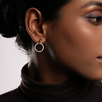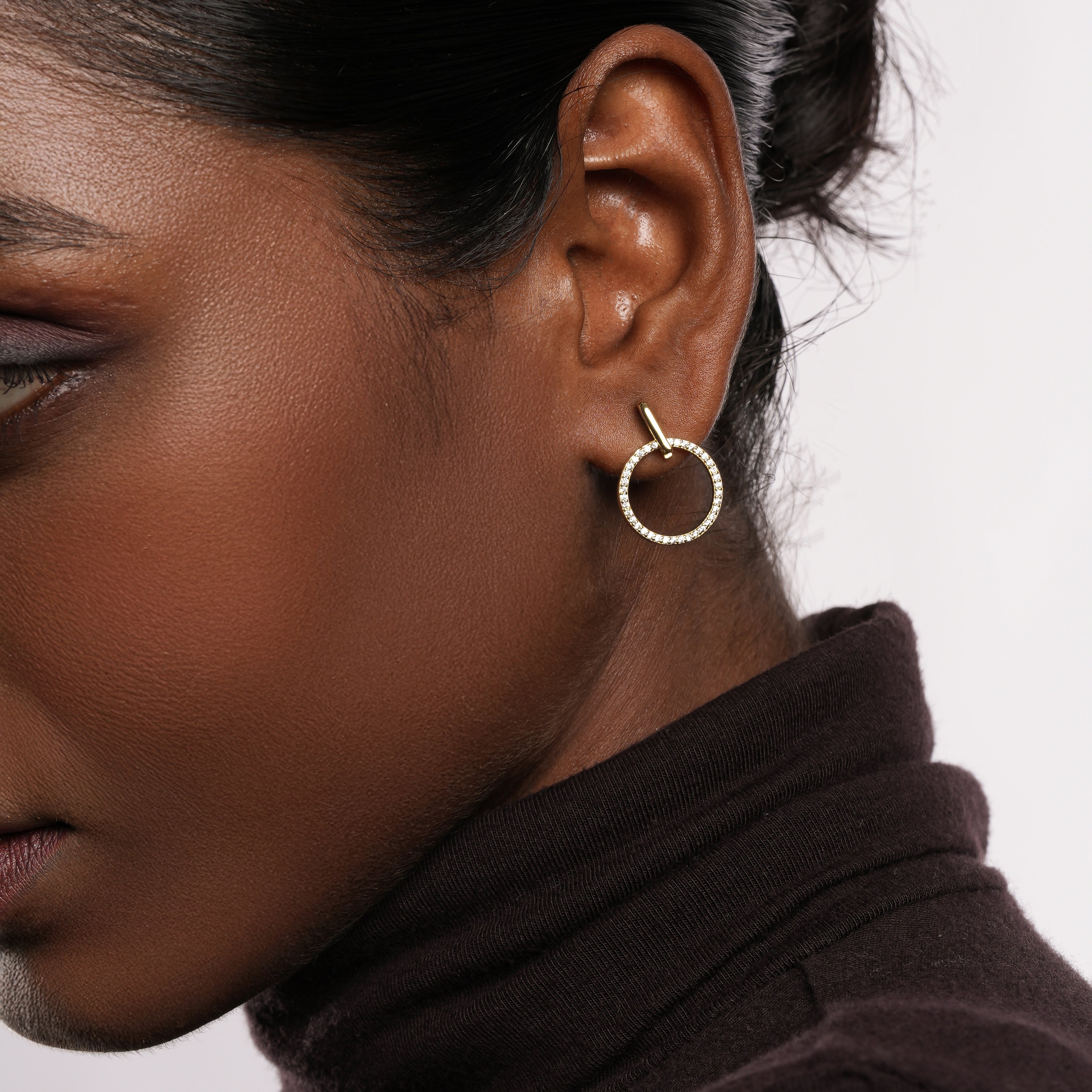 Elevate your everyday look with these stylish diamond circle stud earrings. The minimalist design and sparkling diamonds make them a versatile accessory for any occasion.