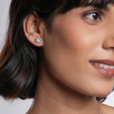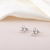 Add a touch of floral elegance to your jewelry collection with these Silver Flower Earrings. Featuring intricate craftsmanship, these earrings are plated with luxurious 18k gold and adorned with sparkling Cubic Zirconia stones that offer a brilliant shine.